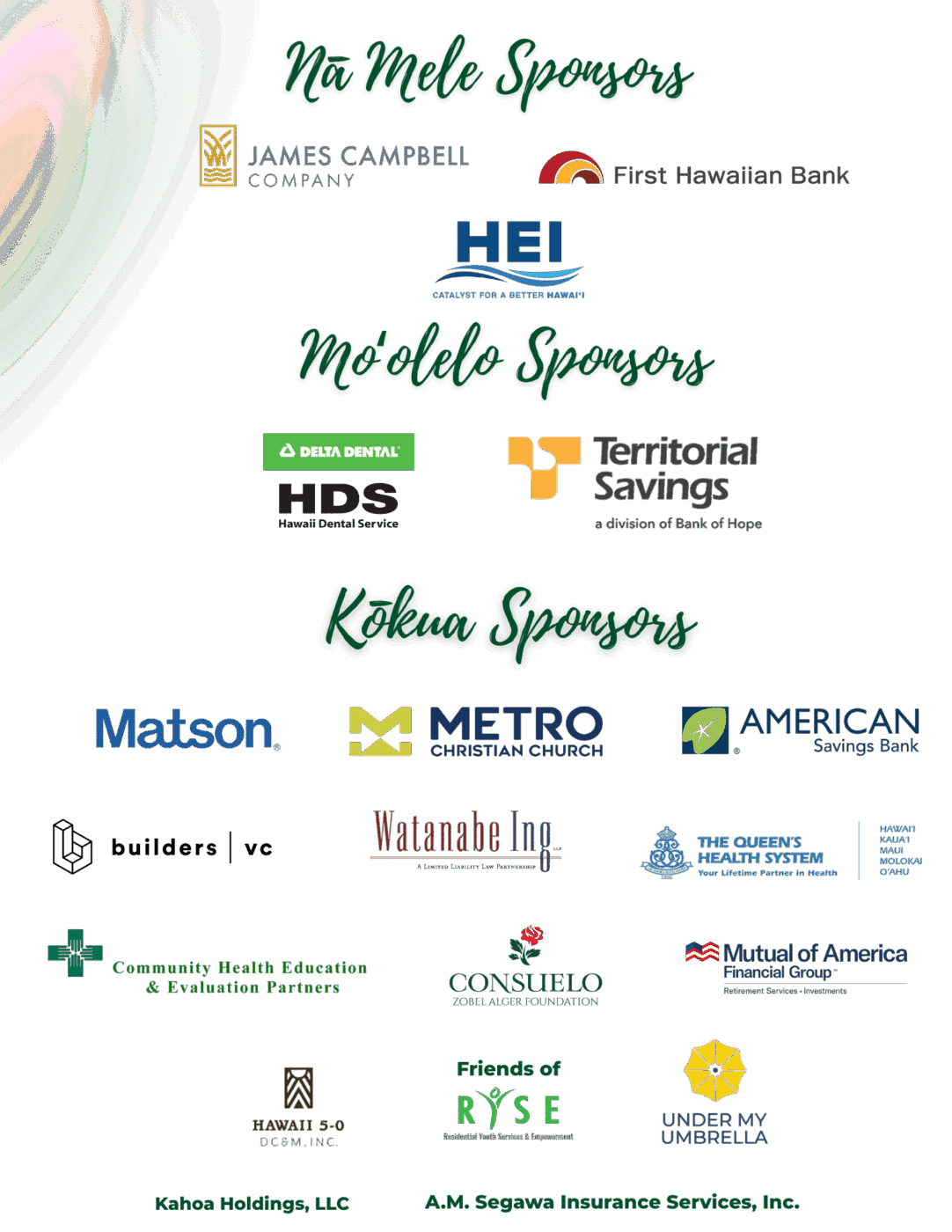 Mahalo to our sponsors, donors, and volunteers who made this year’s Ulu Hana: Pewa Awards such a remarkable success. With your support. The legacy of care and aloha continues to grow.